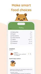 • Fun and easy calorie tracking: Say goodbye to boring calorie logging. With Capy Diet, paying attention to your food and macronutrients becomes a delightful daily ritual. Use the intuitive interface powered by AI to stay in control and make informed choices effortlessly.