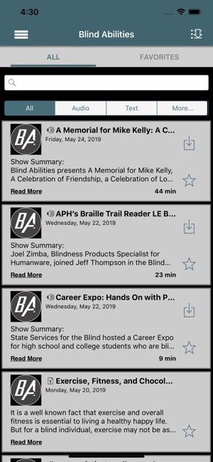 With this app you are always connected to the latest episodes and the show. Quickly star episodes and save them to a list so you can easily enjoy them over and over! This app has a Car mode too! Rotate your phone to display larger playback controls. It is the best and most convenient way to access Blind Abilities.